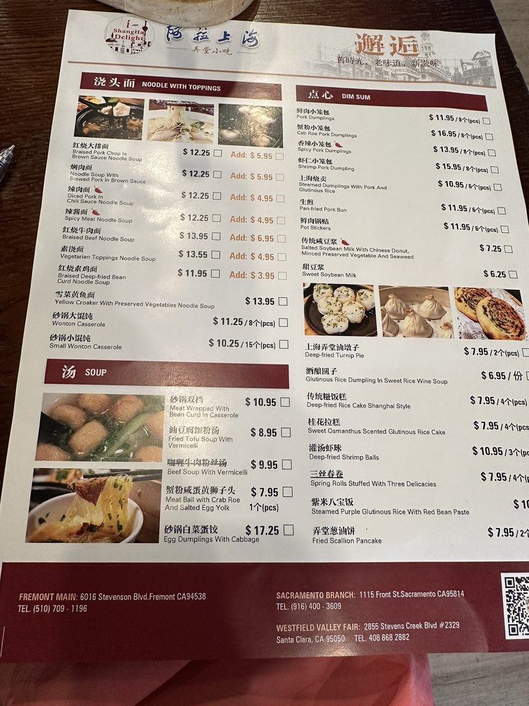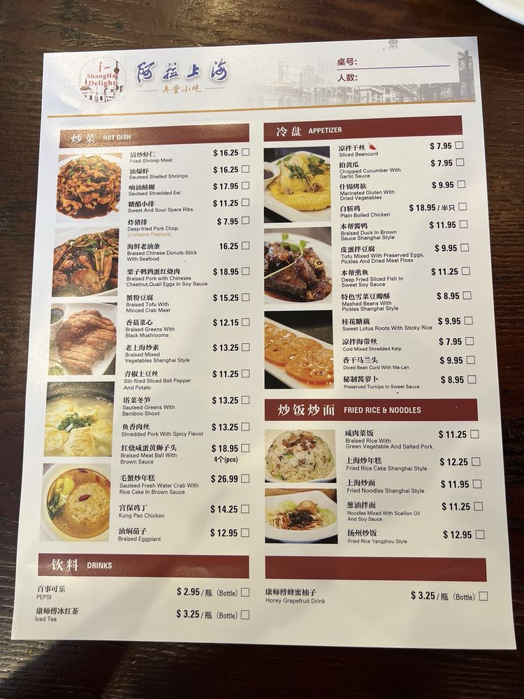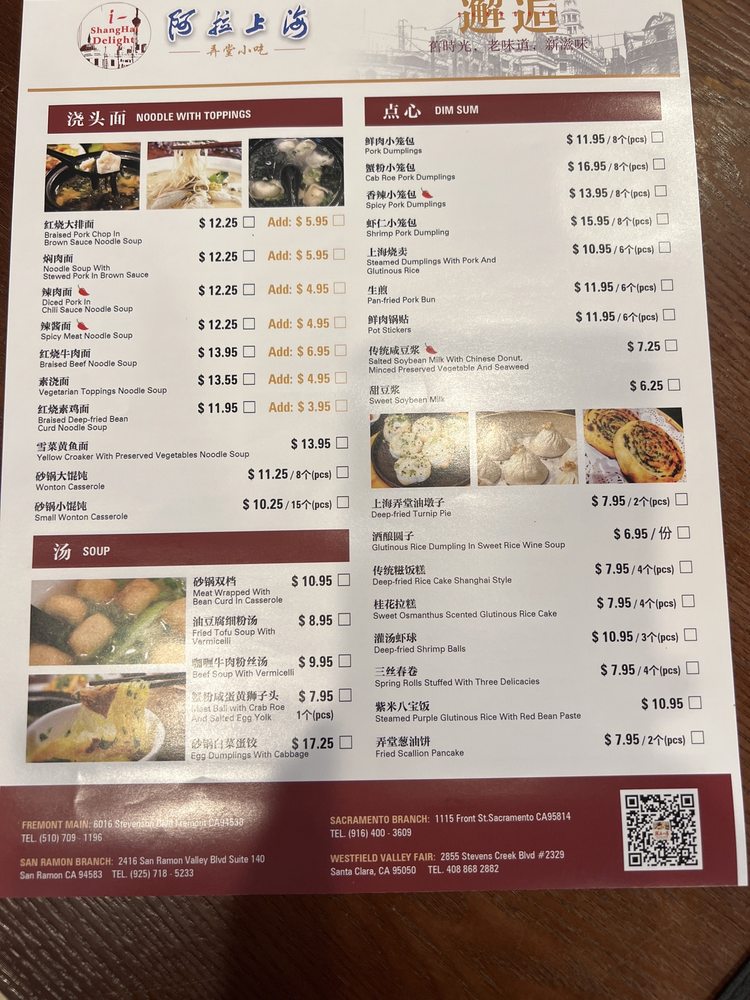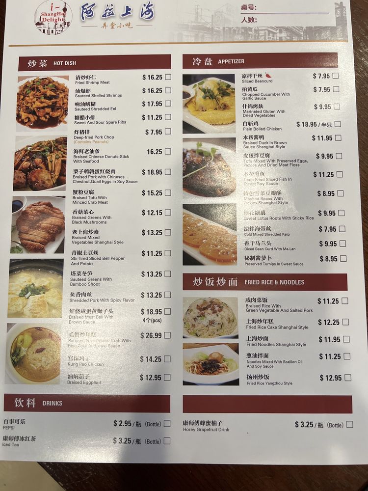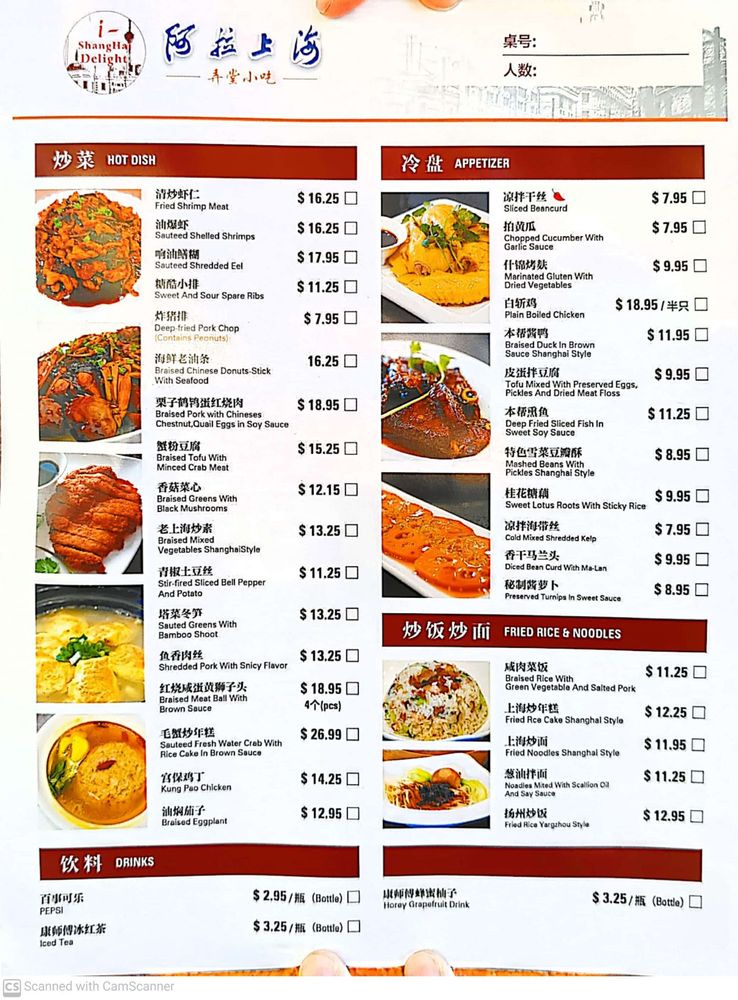 Introducing the menu at I-Shanghai Delight, a cozy and welcoming spot in Fremont offering authentic Shanghai-style dishes. The standout signature dish is the xiao long bao (soup dumplings) - juicy and flavorful, a must-try. Also, don't miss the sheng jian bao (pan-fried buns) with a crispy bottom and savory filling. The menu boasts a great variety of options, catering to different tastes.